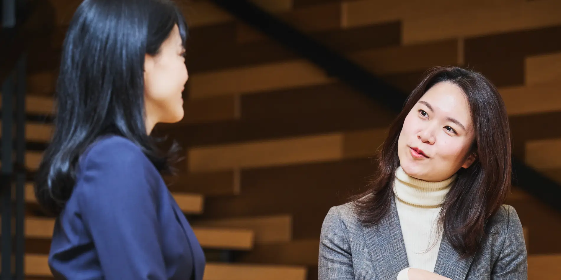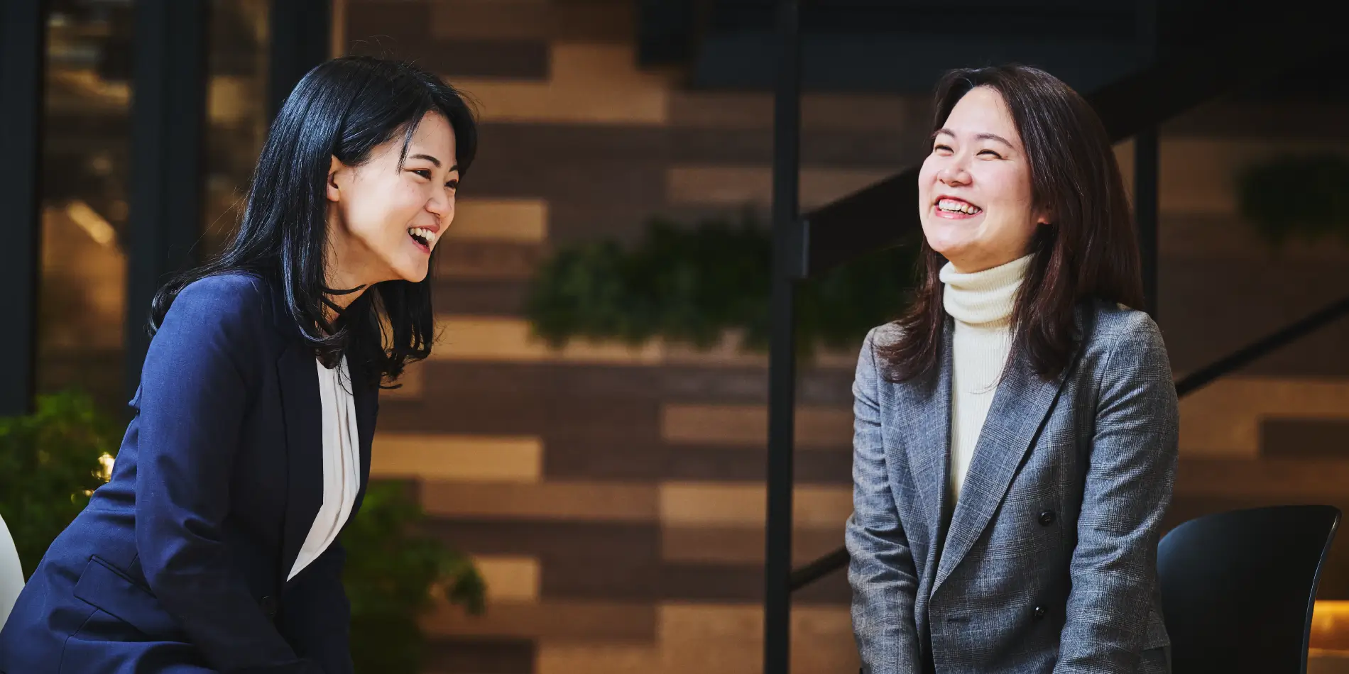 これって過程を共有しながら業務を進められるから、結果として効率的なんですよね。レイヤーの間で大きな出戻りがなくて済む。上司や役員との関係もフラットで、普段あちらから気さくに声をかけてくれるので、私たちからも気兼ねなく相談できる。上下関係なく、意見もしっかり言い合いますし。
