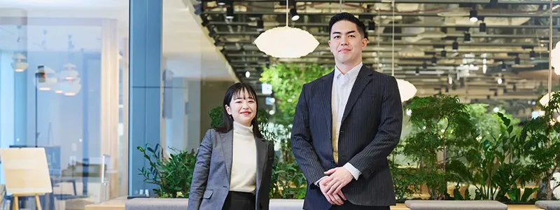 あえて逆の切り口から三菱地所を語ってもらい、リアルに迫る対談。第2弾のテーマは『トップダウンVSボトムアップ』。業界や規模感からトップダウンのイメージをもたれがちな三菱地所ですが、意外と……。キャリア入社の二人がざっくばらんに語ります。
