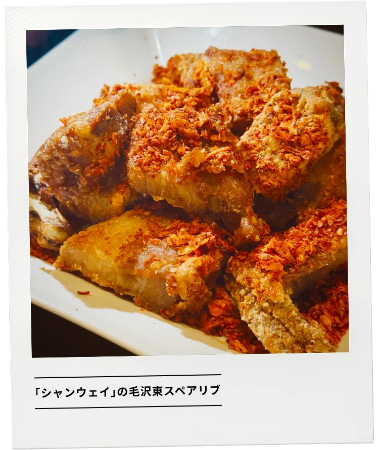 青山の再開発プロジェクトを担当していたときに通っていた「シャンウェイ」の毛沢東スペアリブが私の勝負メシ。ピリッとした辛さが刺激となり、エネルギーが一気に湧いてくるあの感覚がたまりません。今でも仲の良いメンバーと「シャンウェイの会」を定期的に開催。近況を報告し合いながら親睦を深めています。