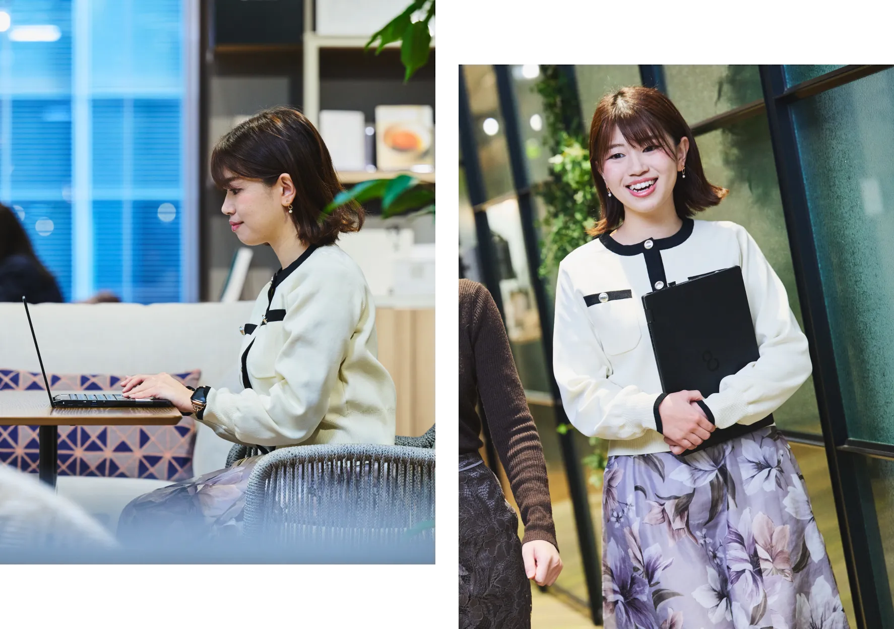 総合職のサポートという立場ではありますが、企画段階から積極的に意見を出し、実行部隊としてプロジェクトを推進する場面も多くあります。それは一般的な「サポート」の枠を大きく超えたものばかりで、責任は大きいですが、その分、やりがいと手応えを感じています。とくに達成感が大きいのは、みんなの努力が実を結んだと感じる瞬間です。